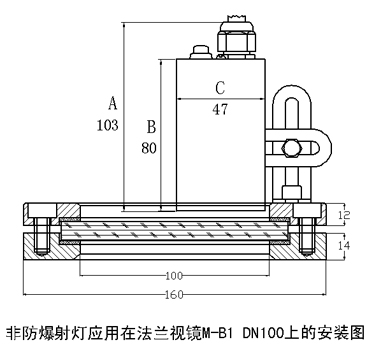 1、燈具安裝時,只需在視鏡蓋板上鉆攻絲1個安裝螺孔,即可固定燈具。安裝孔尺寸為M6螺深6mm